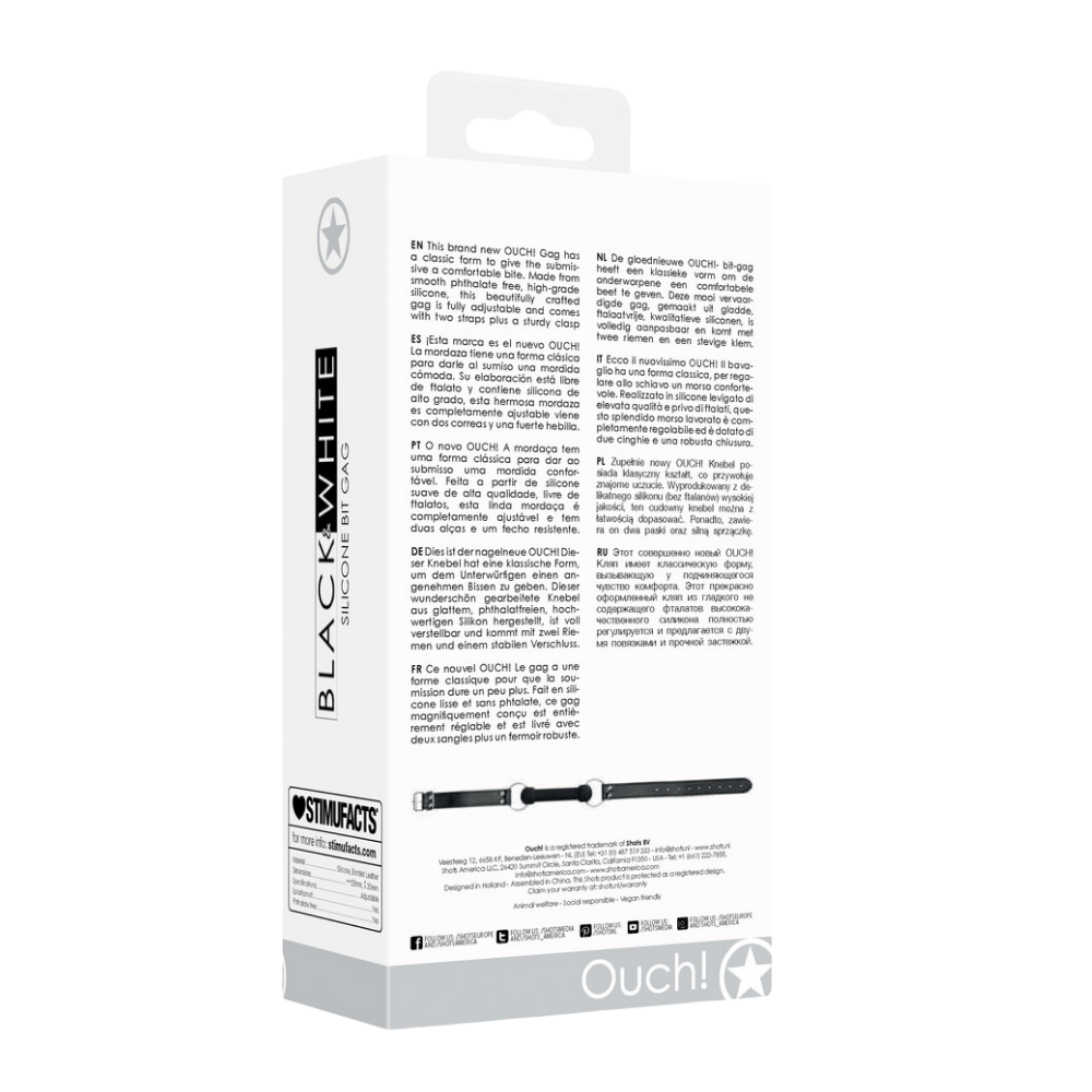 Utforska kontroll, tyst kommunikation och ökad närvaro med denna silikon bit gag från Shots Black and White Collection. Den klassiska designen med en bred silikonbit skapar en fyllig och omslutande känsla, samtidigt som den effektivt begränsar tal och förstärker den sensuella dynamiken mellan er. Den mjuka och flexibla silikonen är både behaglig och hygienisk, helt utan smak eller doft, vilket ger en ren och komfortabel upplevelse.