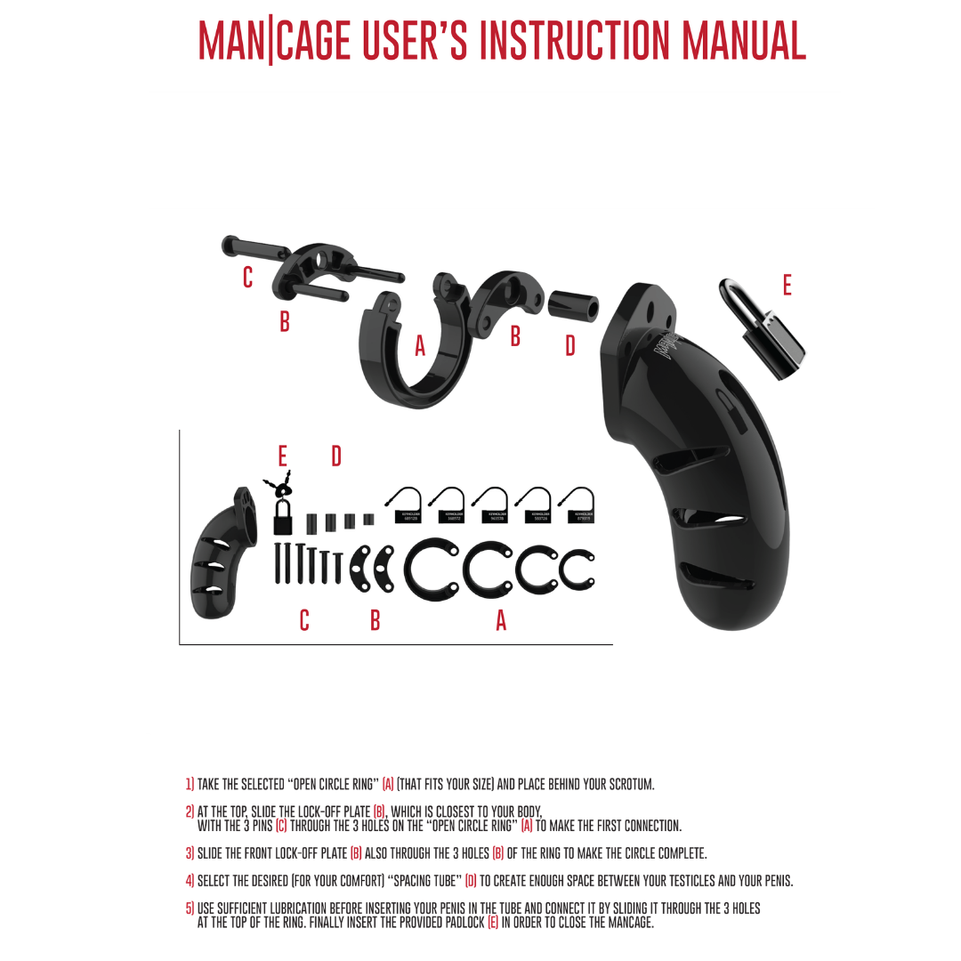 Applicera gärna vattenbaserat glidmedel för en smidigare placering. Välj basring som passar din kropp och montera buren innan låset säkras. Perfekt för kyskhetslek, dominansspel och långvarig erotisk kontroll.