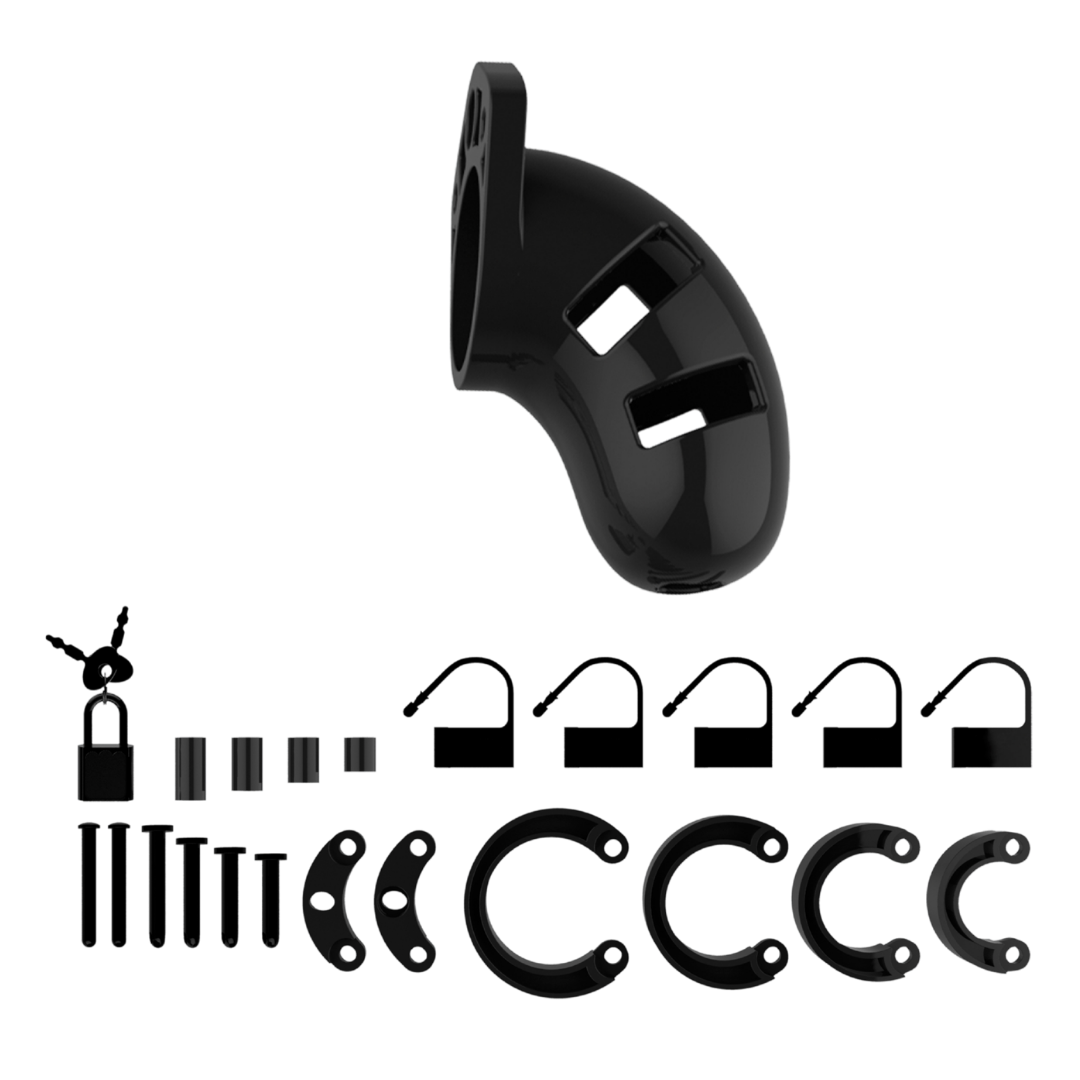 Mancage 01 är en mindre och mer restriktiv modell för dig som vill uppleva en tydligare känsla av kontroll. Med fyra utbytbara basringar och medföljande stift kan passformen justeras för att sitta säkert, bekvämt och stabilt. Ett hänglås med nycklar samt ett engångslås i plast ingår så att din partner bokstavligen kan hålla nyckeln till både frihet och njutning.